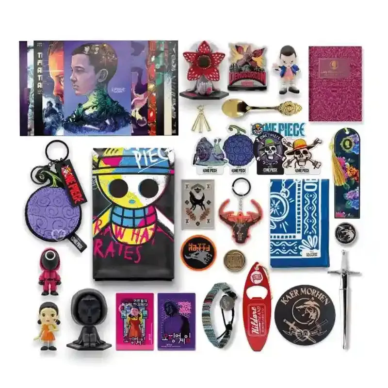 Des figurines, pins, porte-clés et accessoires inspirés de vos séries préférées : Stranger Things, One Piece, Squid Game, The Witcher, Bridgerton, et plus encore.